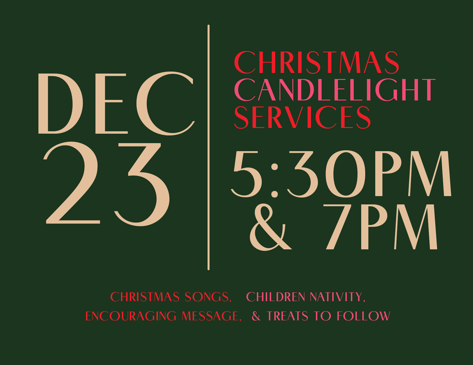 Christmas Candlelight Service is nearly here. Invite your friends and family as we celebrate the birth of Jesus with an evening candlelight service.