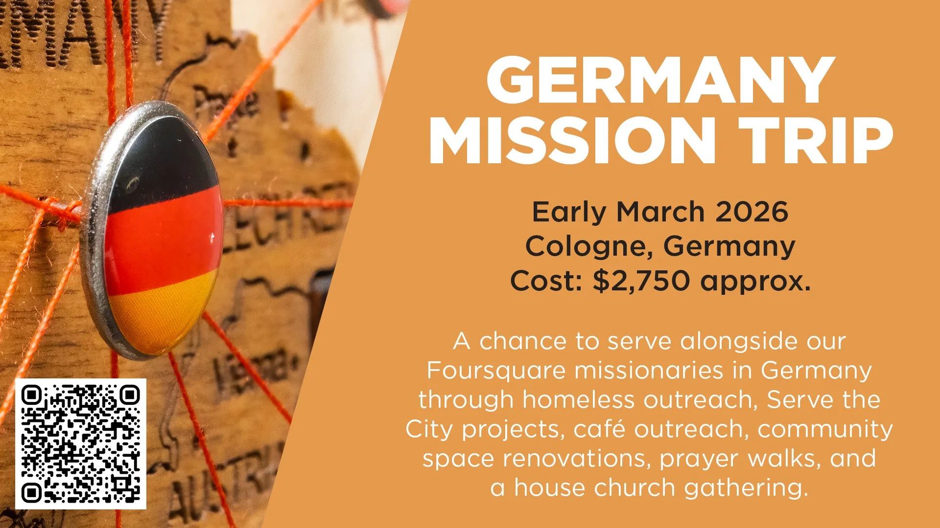 This mission trip will be an opportunity to connect with and serve alongside our Foursquare missionaries in Germany, the Brazees. We will partner with a variety of their ongoing ministries and projects: